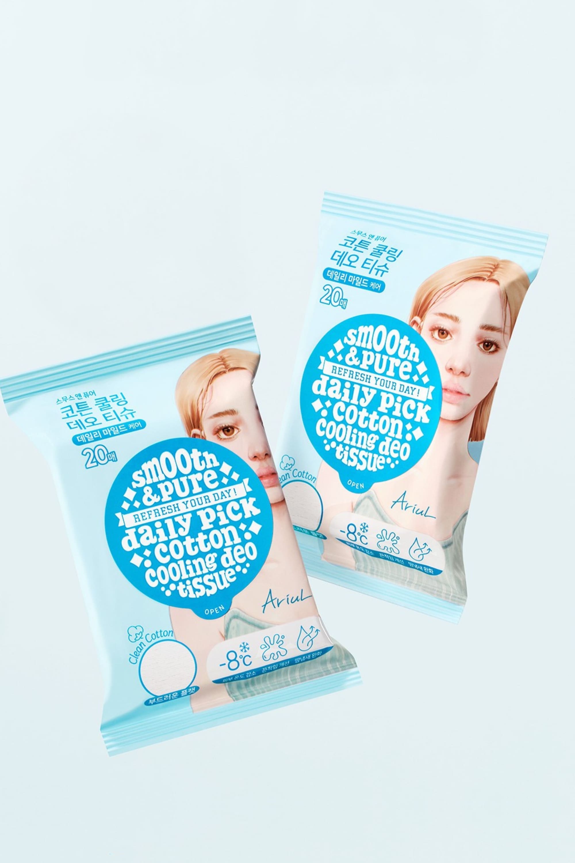 Ariul Smooth & Pure Cotton Cooling Deo Tissue, klasik ıslak mendillerin ötesinde pamuklu dokusuyla cilde zarifçe temas eder. 200x180 mm yüzeyi tek bir mendille geniş yüzeylere etki eder. pH değeri 4.2-5.2 arasında dengelenmiş yapısı sayesinde cildin doğal bariyerine saygılıdır. Kol altı gibi hassas bölgelerde de tercih edilebilir. Yumuşak yapısı makyajı bozmaz, tıraş sonrası ciltte ferahlatıcı bir his bırakır. Hijyen ve bakımın bir araya geldiği Ariul Smooth & Pure Cooling Deo Tissue, günün her saatinde kendini tazelemek isteyenler için birebir. Cildin ihtiyaç duyduğu konfor, serinlik ve temizliğin ortak noktası!