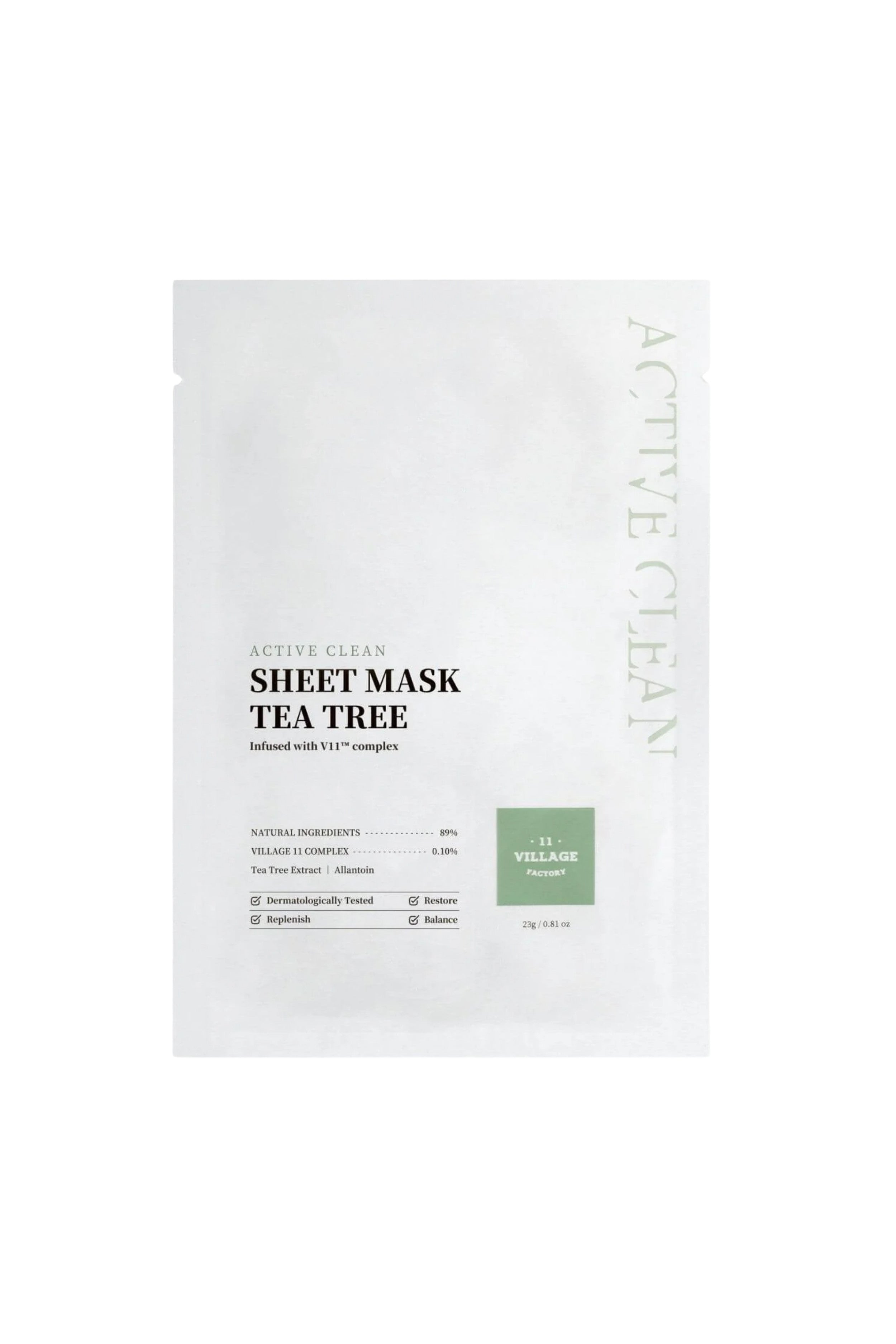 Çay ağacının yağ-nem dengeleyici, yatıştırıcı ve nemlendirici etkileri V11™ kompleks’in benzersiz gücüyle birleşti ve ortaya Active Clean Sheet Mask Tea Tree 23gr çıktı. Özellikle yağlı, karma ve akneye yatkın ciltlerin hızlı sonuçlar için tercih edebileceği doğal bir çözüm.